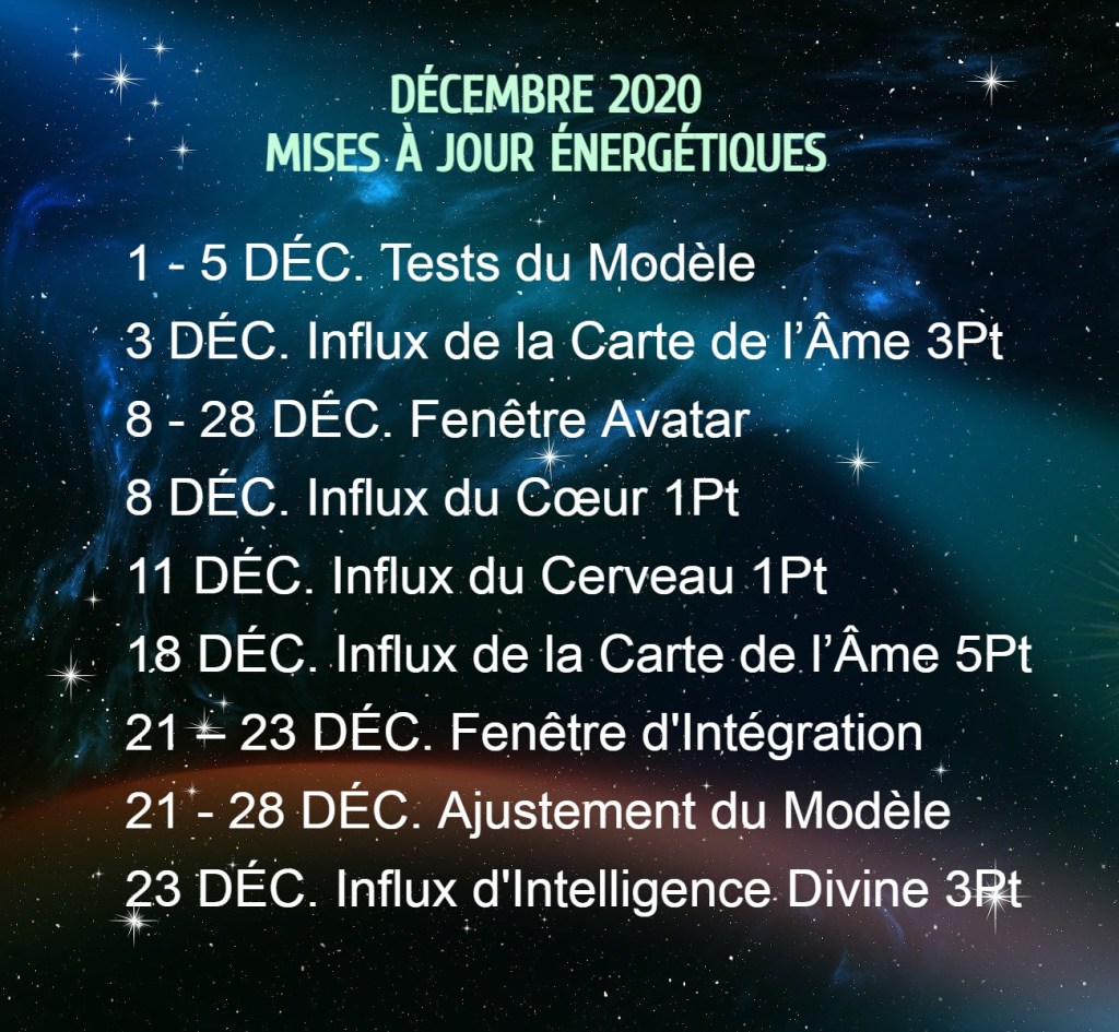Maintenant que nous sommes passés par le chas de l’aiguille pour arriver dans le nouveau secteur, le grand nettoyage commence pour ceux qui sont victimes. Ils vont commencer leur voyage afin de récupérer leur pouvoir. Pour ceux qui sont créateurs, vous allez commencer à voir les ressources et les connexions qui arrivent pour construire vos rêves. Comme vous pouvez le voir, la plupart des fenêtres de Décembre sont des fenêtres avec de très faibles influx car le 28 Novembre a été le dernier point d’influx massif. Nous allons traverser et en finir avec la désintoxication de l’enfer.