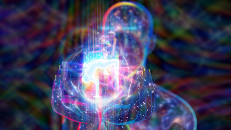 Chaque fois que quelqu’un abandonne complètement son ego à son aspect supérieur (Divinité / Lumière), son corps peut se remplir de plus de Lumière, car l’aspect ego n’est plus en travers du chemin..…
