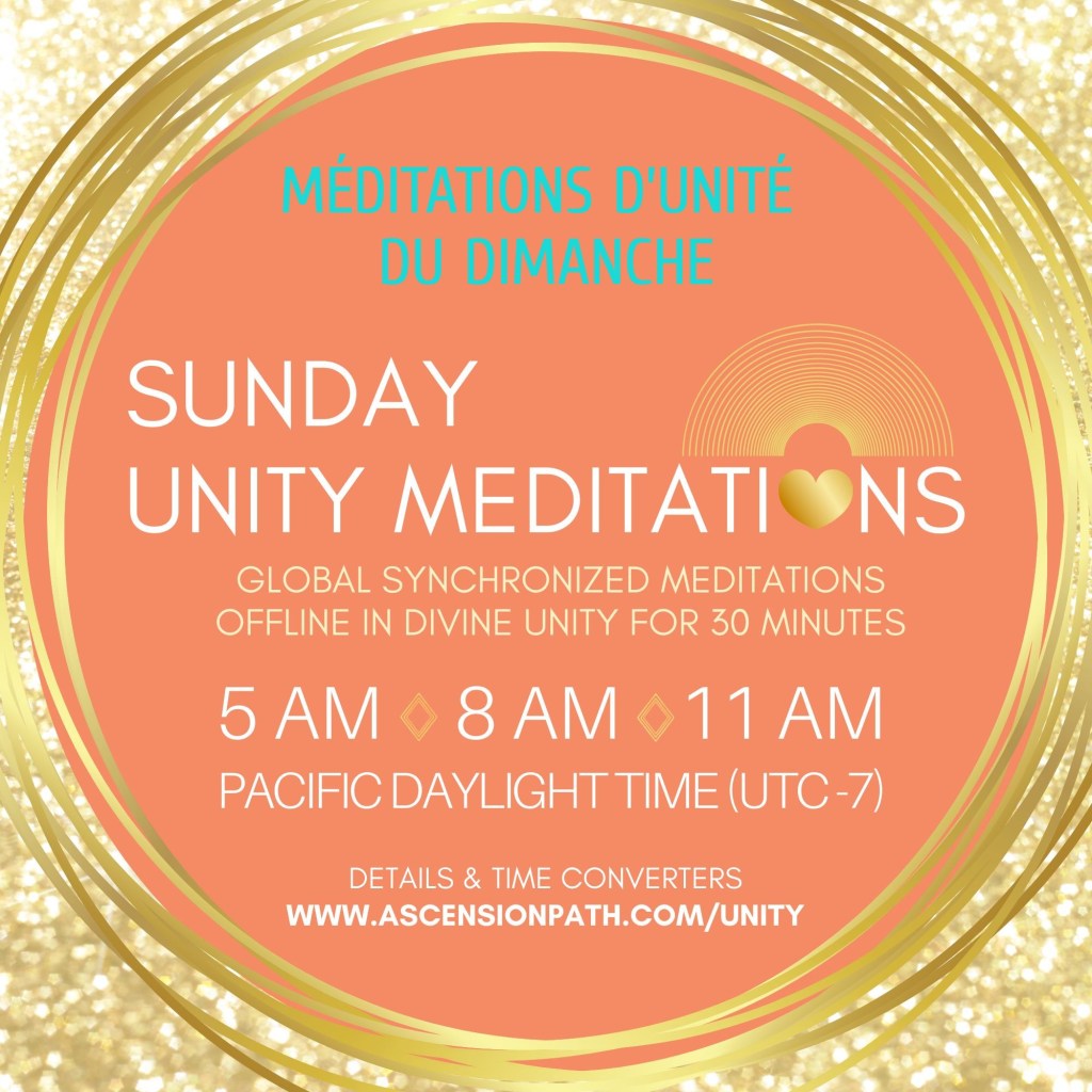 Méditations Mondiale d’Unité à 5AM, 8AM et 11AM, heure du Pacifique. (Utilisez le fuseau horaire de Los Angeles pour votre conversion horaire).