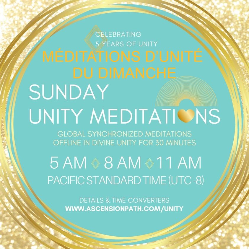 Centrez-vous, respirez en ayant l’intention de vous connecter à tous les Méditants d’Unité en tant qu’une seule force d’AmourLumière positive et pure.