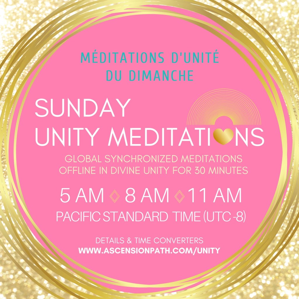 Méditations Mondiale d’Unité à 5AM, 8AM et 11AM, heure du Pacifique. (Utilisez le fuseau horaire de Los Angeles pour votre conversion horaire).