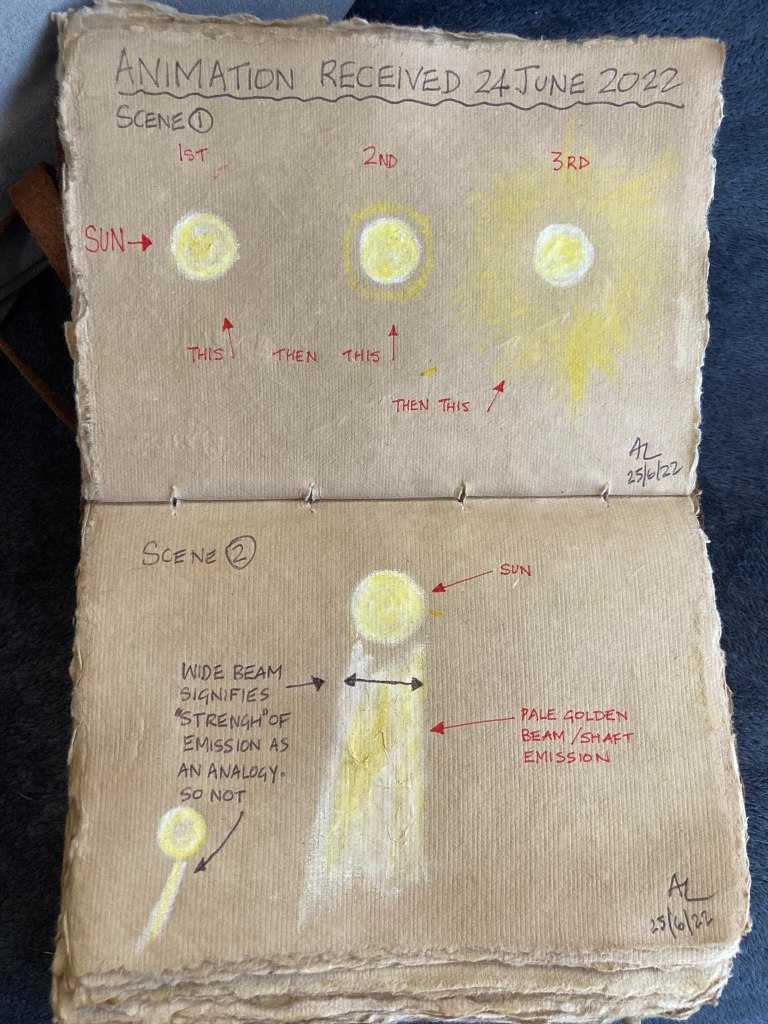 La deuxième ÉMISSION d’ÉNERGIE sera un ‘large’ conduit (ou faisceau) d’énergie dirigé vers la Terre Mère. De la manière dont elle a été montrée, la ‘LARGEUR’ du Conduit / Faisceau d’Énergie représente (comme une analogie animée) la FORCE RÉELLE de l’Émission d’Énergie. Donc ne vous focalisez pas sur la taille ou la forme physique, car c’est la FORCE réelle du Conduit / Faisceau que l’on m’a montré qui compte. Ce conduit / faisceau est une émission de LUMIÈRE DORÉE TRÈS PÂLE provenant du Soleil.