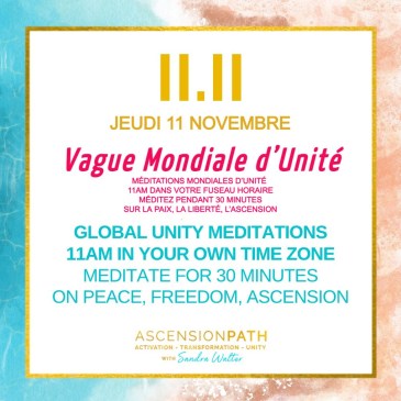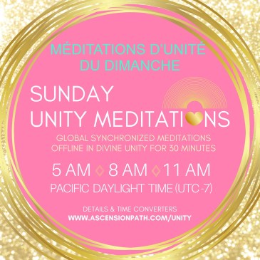 Chers amis de TransLight, je vous souhaite un très beau Dimanche. Avec beaucoup d’amour, de paix et de douceur. Marinette Rejoignez des milliers de personnes dans notre pratique hebdomadaire de cinq ans d’Ascension, de Paix et de Conscience d’Unité. Méditations Mondiale d’Unité à 5AM, 8AM et 11AM, heure du Pacifique. (Utilisez le fuseau horaire de … Lire la suite MÉDITATIONS MONDIALES D’UNITÉ DU DIMANCHE